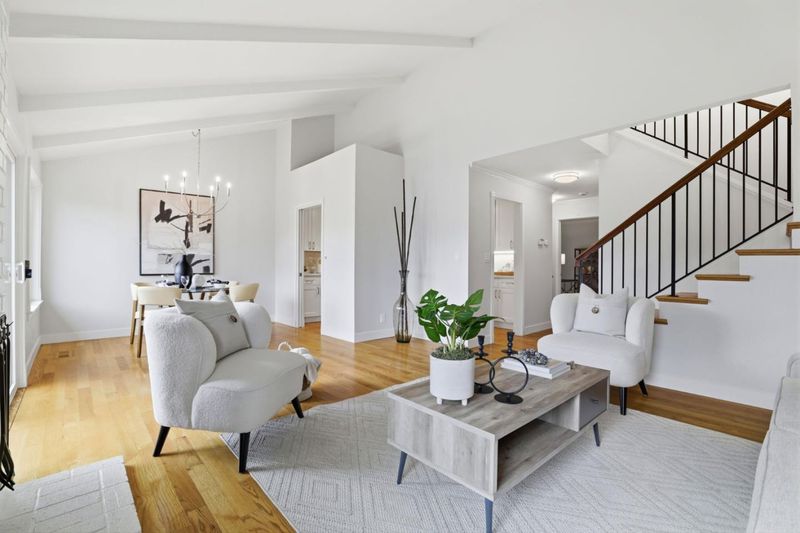 Open House Friday 4:30-6:30 Saturday 1-4pm & Sun 1:30 - 4:30pm. Stunning, completely remodeled top to bottom townhome that feels like a single family home in the heart of Sunnyvale with top-rated Cupertino schools. This spacious 1,590 sqft home offers 3 bedrooms and 2.5 baths with vaulted ceilings and a bright, open layout. Move-in ready with fresh interior paint, refinished solid hardwood floors downstairs, and new carpet in the upstairs bedrooms and hallway. The remodeled kitchen features new shaker cabinetry, quartz countertops, and stainless-steel appliances including a gas range with hood, microwave, dishwasher, and refrigerator. The inviting living area is anchored by a cozy fireplace. One bedroom and a half bath are conveniently located on the main level. Upstairs, the expansive primary suite offers vaulted ceilings, walk-in closet, and an ensuite bath with double sinks and large shower. A spacious secondary bedroom and hallway full bath with tub shower combo complete the upper level. Enjoy a charming patio and landscaped yard perfect for a garden. Additional highlights include a large laundry room, designer lighting, central A/C and a 2-car garage. Community pool and rec room. Prime location near Apple and other tech companies, shopping, and dining. Don't miss this one!