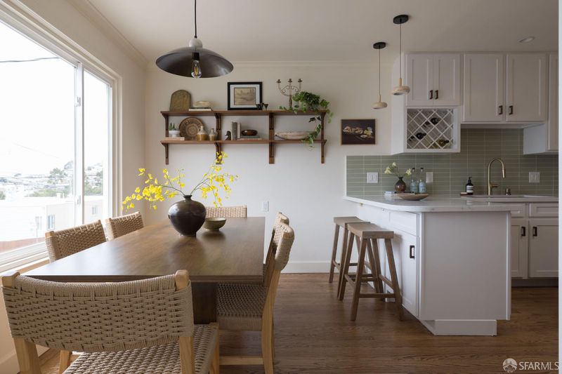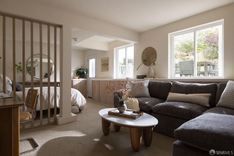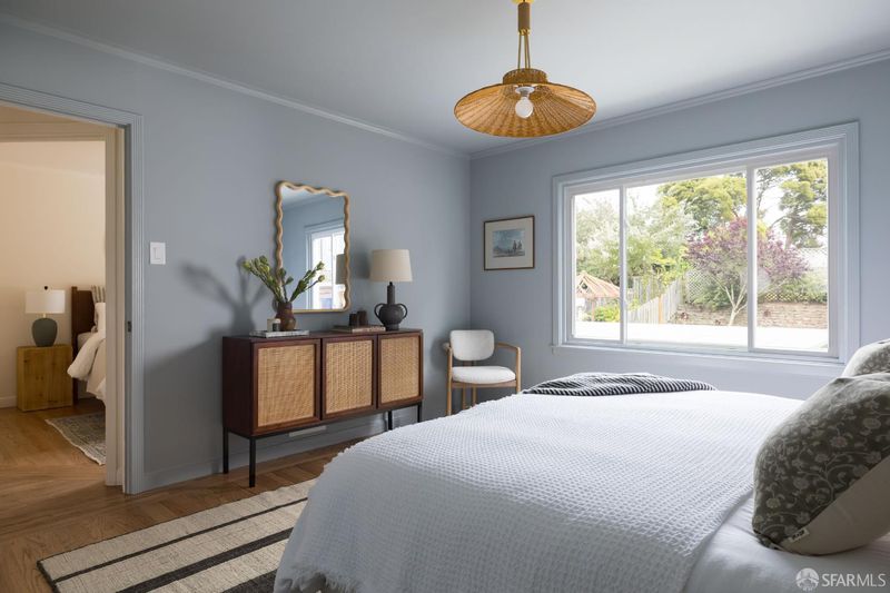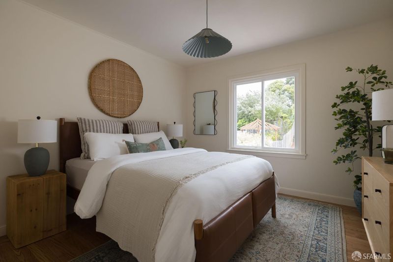 Thoughtfully renovated Ingleside home offering bright, comfortable living with flexible floor plan and seamless indoor-outdoor flow. Up a short walk-up entry, the main level opens to a light-filled living room with a period fireplace, picture window, and refinished hardwood floors. The adjoining dining area flows into a renovated kitchen with stone countertops, tile backsplash, skylight and updated appliances. Two spacious bedrooms are set toward the rear of the home, overlooking the garden. The main level is complete with a renovated bathroom featuring a walk in shower and skylight. Downstairs, a flexible living space with second full bathroom offers multiple configurations ideal for guests, a home office, or potential primary suite, with direct access to the backyard. The east-facing yard features a flagstone patio, outdoor dining area, and tiered drought-tolerant landscaping. A one-car garage includes washer and dryer and built-in storage. Ideally located near Ocean Avenue, Stonestown, and Westlake Center, with immediate access to Daly City BART, Highway 1, and Interstate 280 for convenient commuting to downtown San Francisco and the Peninsula.