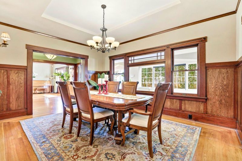 Framed by a row of soaring palms on a classic sidewalk-lined street in highly sought after Naglee Park Neighborhood, this beautifully preserved Craftsman welcomes you with timeless character and warmth. Inside, hardwood floors, stained-glass accents, and handcrafted wood details create inviting sense of history and home. The enclosed sun room, lined with windows, offers the perfect morning retreat, flowing into a bright breakfast room and the heart of the home. The spacious living room centers around a warm fireplace with stone mantel, built-ins, and cozy seating, while the formal dining room showcases period cabinetry and elegant millworkideal for gatherings both large and intimate. The updated kitchen blends vintage charm with modern convenience, featuring Carrara marble counters, Craftsman cabinetry, and premium appliances. All three bedrooms are on one level, while the remodeled bath preserves classic style with timeless finishes. Outside, the private backyard offers lawn space and mature citrus trees, creating a peaceful setting for relaxing or entertaining. With central A/C, large basement storage, a detached two-car garage, and a prime location near SJSU and downtown amenities, this is a home that truly captures the spirit of San Joses most beloved historic neighborhood.
