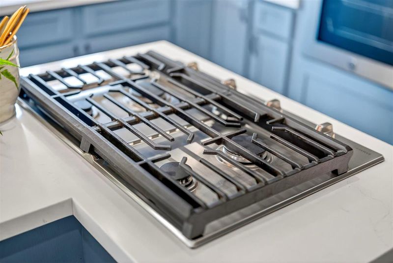 - 220 Volt Outlet, Cooktop - Gas, Countertop - Quartz, Dishwasher, Garbage Disposal, Island, Microwave, Oven - Built-In, Refrigerator