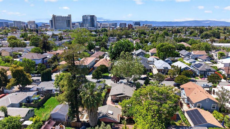 Dont miss this gorgeous 1919 Craftsman Bungalow, a perfect blend of historic architectural character and modern designer finishes. Step inside to find a light-filled interior where original details like gleaming hardwood floors with inlay borders and built-in cabinetry around the fireplace create a warm, inviting atmosphere. The formal dining room is stunning, featuring traditional wood wainscoting and large windows that flood the space with light. The heart of the home is the designer chefs kitchen, updated with vibrant blue shaker cabinetry, sleek white quartz countertops, an island with a gas cooktop, and a striking tile backsplash that adds a unique pop of personality. Plus you have 2 spacious bedrooms, an updated bath, and laundry chute from the hall pantry to the large basement with a workbench, laundry area, and ample storage (stairs to basement accessible from the backyard). The private, fenced backyard is a true sanctuary with a paver patio, mature citrus, and a soothing hot tub. You will love the finished detached studio with vaulted ceilings, perfect for an art space or home office. Prime downtown location near SJSU, Japantown, and San Pedro Square with easy access to Highways 87, 101, and 280. Own a piece of San Jose history thoughtfully updated for today!