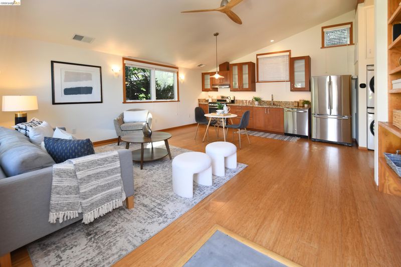 Classic Berkeley charm meets modern versatility in this split-level property featuring an updated 3BR/2BA main home plus a newer ADU. Built in 1937, the main residence offers approx. 1,500 sq. ft. with hardwood floors, an open updated kitchen, and a spacious primary retreat. Dual-pane windows and solar panels enhance efficiency, while a tandem garage and attic storage add convenience. Period details blend seamlessly with thoughtful updates. The detached 1BR/1BA ADU (built in 2018) offers approx. 640 sq. ft. with vaulted ceilings and a bright, airy feel—ideal for guests, rental income, or a private office. Separate access provides flexibility and privacy. Centrally located near amenities, dining, and transit, with Whole Foods Market nearby. A rare blend of character, modern living, and sustainability.