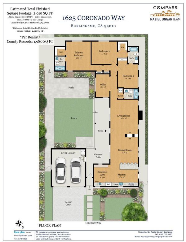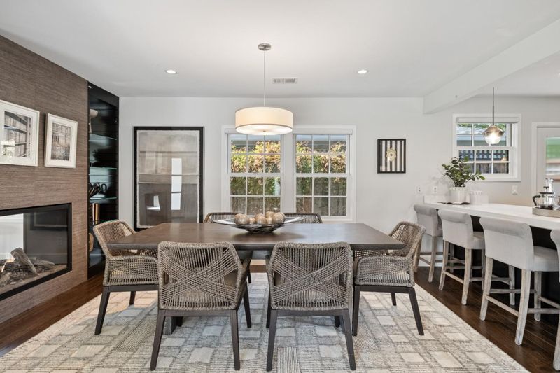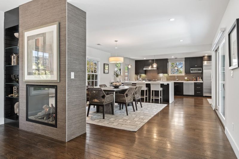 Discover a beautifully updated home in Burlingame's Ray Park neighborhood. Set on a quiet, tree-lined street, this single-story residence offers 3 bedrooms, 3 bathrooms, and approximately 1,980 s/f. The open-concept kitchen features floor-to-ceiling espresso cabinetry, a white quartz waterfall island, and stainless steel appliances, including a DCS by Fisher & Paykel gas range with Bosch hood, Miele dishwasher, KitchenAid French door refrigerator, and integrated microwave. A custom breakfast nook with a secondary sink and wine fridge. A see-through fireplace with floor-to-ceiling porcelain connects the living and dining spaces, with hardwood floors throughout. The primary suite includes an en suite bath, while two bedrooms share a bath with mosaic tile and glass-enclosed tub and shower. Additional office and guest bath. Private courtyard with covered patio, lawn, mature trees, and BBQ area with gas hook-up. Additional amenities include dedicated laundry area, two-car garage, and 220V outlet. Close to top-rated schools, downtown Burlingame, and easy commuting options via Highway 101 to San Francisco.